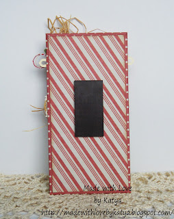 The first magnet is green. By the way I have used Christmas papers for it, it's Trimcraft Back to Basics Christmas. Also I have used washi tape, die cuts, raffia, wooden embellishments, twine, berries, roses, cotton lace, buttons, pearls and stamps.