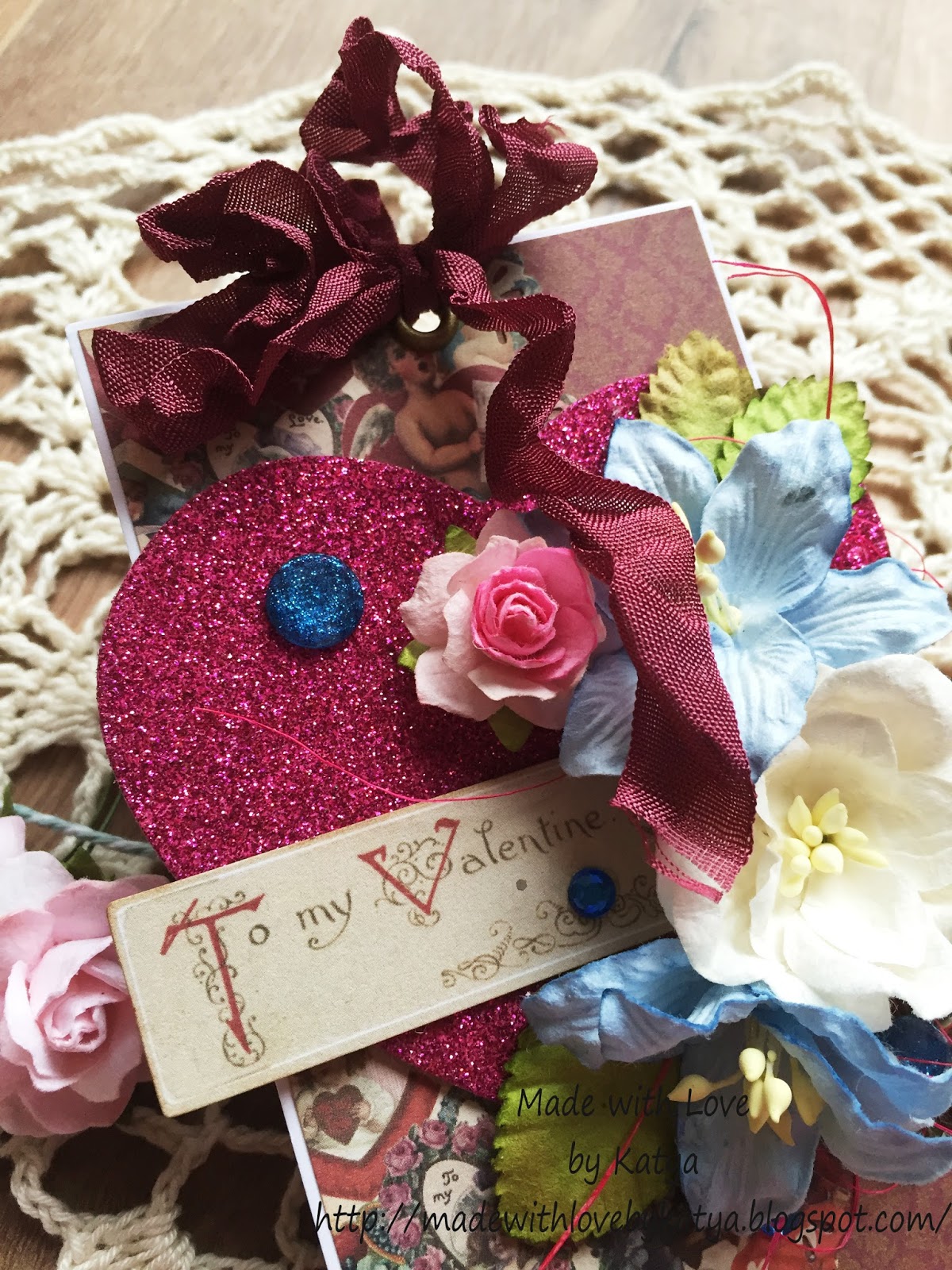 Начинаю по тихоньку обрабатывать фото и показывать вам =) Начну с вот такого ярко-винтажного тега на День Святого Валентина. Вообще я учавствую в обменнике местном ирландском на фейсбуке и по нему сделала миник в форме сердца и открытку-шейкер. А потом остались обрезки и было время, решила сделать еще тег на продажу. На ДСВ у меня почему то всегда мало заказов поэтому в этом году я хочу за ранее сделать пару работ для примеров и выложить на фейсбуке по раньше.