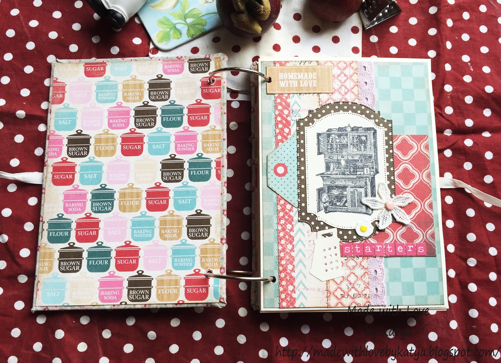 Блокнот делала из новой коллекции Карта Белла "Home sweet home", но сейчас она уже прошлогодняя получается и не совсем новая, но она долго у меня лежала и ждала когда меня накроет вдохновение =) В блокноте 5 разделителей, на обороте каждого разделителя есть кармашек для нужных бумажек или карточес с рецептами.
